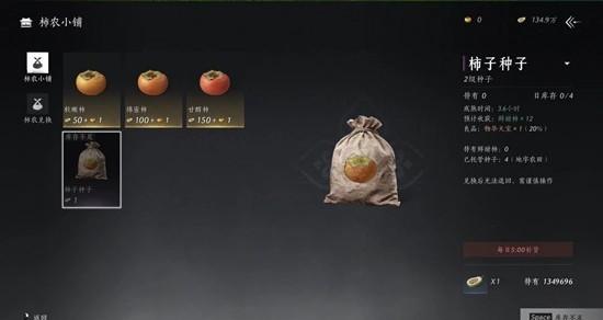 打开活动柿业有成 柿农小铺 每日可购买四个种子