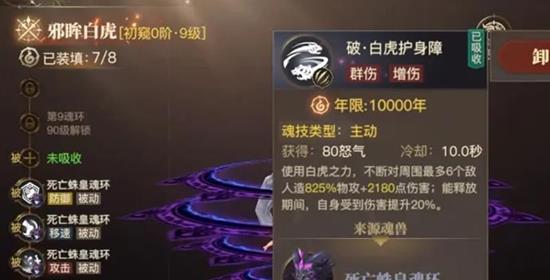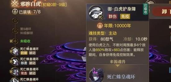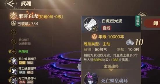 第二魂技白虎烈光波能有效打乱敌方节奏。 经过短暂蓄力后,邪眸白虎会朝前方释放一道直线攻击。这个技能不仅能对路径上的多个敌人造成高额物理伤害,还会附加致盲效果。被致盲的敌人命中率会大幅下降,这既能减少己方承受的伤害,也能为队友创造更安全的输出环境。