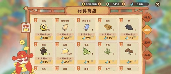 ③开启杂货铺格子。杂货铺每天刷新两次(12、18点),格子越多,产品越多,可以买长时间产品和作物,以及缺少的物资。(但后面格子很贵,可以先把前面便宜的开了)