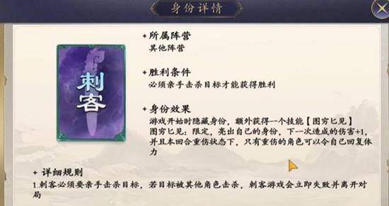 刺客身份的胜利条件是在其他角色决出胜负前,亲手消灭指定的目标角色。玩家可以选择开局隐藏身份,积攒输出能力,待时机成熟时再公开身份以获得真实伤害加成,并专注于追击目标,确保关键击杀不被他人夺取。