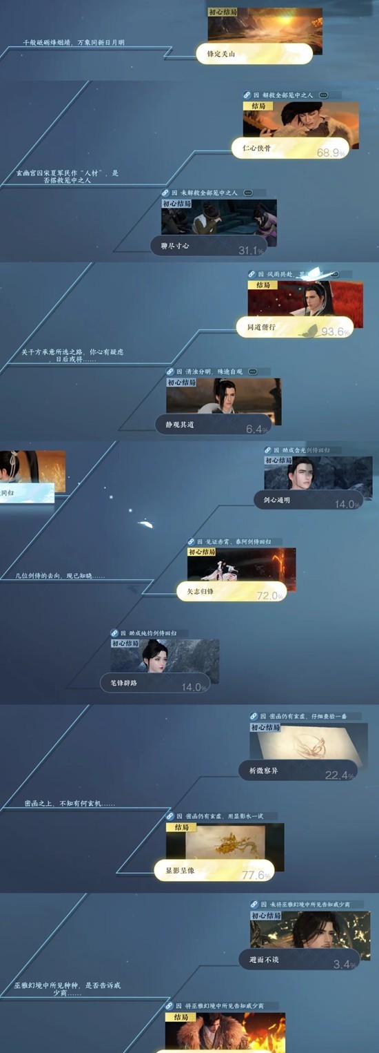 因为主线分了两次开放,如果在第一次开放的主线做完后,做了奇遇“孤剑无烬”、“含光鉴心”、“刀笔之问”,那么结局会是所有剑侍回归的结局。