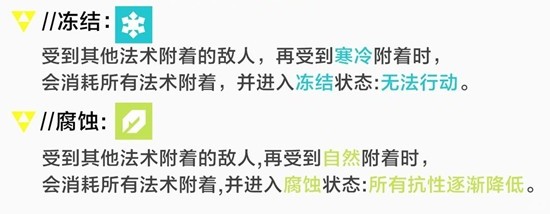 受到其他法术附着的敌人,再受到寒冷附着时会消耗所有法术附着,并进入冻结状态:无法行动。