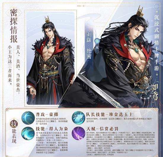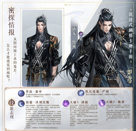 以上就是如鸢新密探名册技能介绍,密探刘繇满宠技能展示的全部内容了,更多游戏资讯,攻略内容敬请关注切游网,您的支持是我们努力的动力!