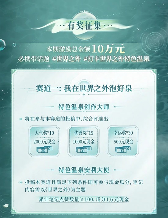 世界之外「栖云志异」主题创作征集活动开启,打卡世界之外特色温泉