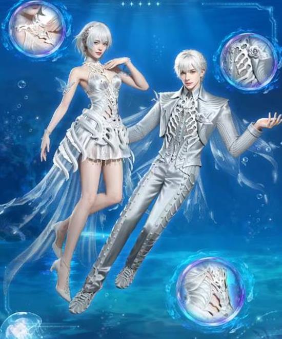 明日之后全新概念时装渊息未央12月11日震撼降临!这款外观由未来终端厂牌操刀,灵感取自万米极境,女子流光鲛纱层叠似白鲸舒展,银质骨骼沿脊背流淌微光;男子银发如雪,风衣剪裁如巨鲸背鳍,静立亦带浪涌气势,整套外观在废土中定格深海永恒。