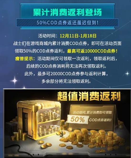 同一周期内,商城累计消耗最多两万点券可一次性领回50%,封顶返1万点券,注意只有一次领奖机会,留好大招再一次性消费最划算。