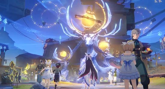 12月11日,《原神》官方正式发布过场动画「祈月之夜」——时长近两分钟的影片没有一句台词,却用温柔的月光与漫天的花灯讲述了璃海的新故事。夜色下的璃月港灯火通明,庆典舞台高悬天空,魈、胡桃、钟离等角色轮番亮相,而镜头焦点落在一位头生弯月角、怀抱玉兔灯笼的神秘来客身上。