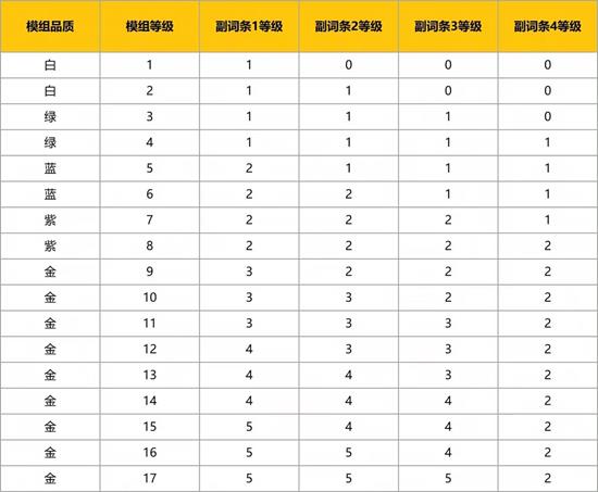 改版后每颗新模组自带四条固定副属性,与主词条完全匹配;其等级由四条副词条等级加总而成,最高17级,数值差异直接显示在图标上,无需再进背包反复对比。达到17级后,玩家可通过高难度副本小概率刷取“闪光模组”,主属性略高于普通满级件,并带有专属光效,后续版本将陆续扩充闪光种类,保持毕业追求。
