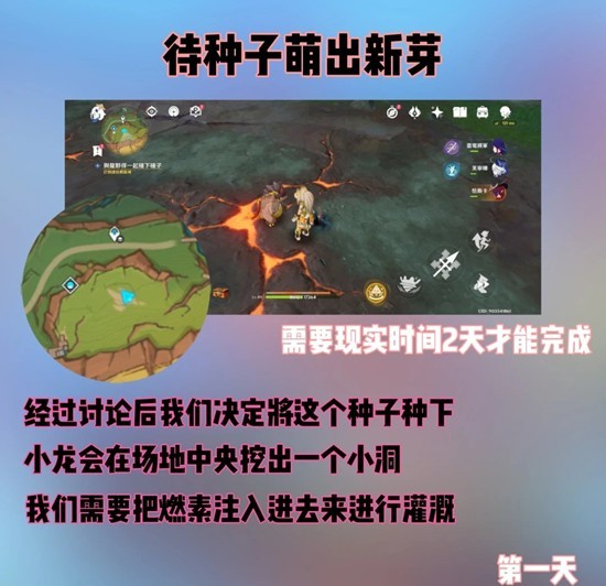 ⓷ 对话结束,等待龙伙伴挖坑并种下。