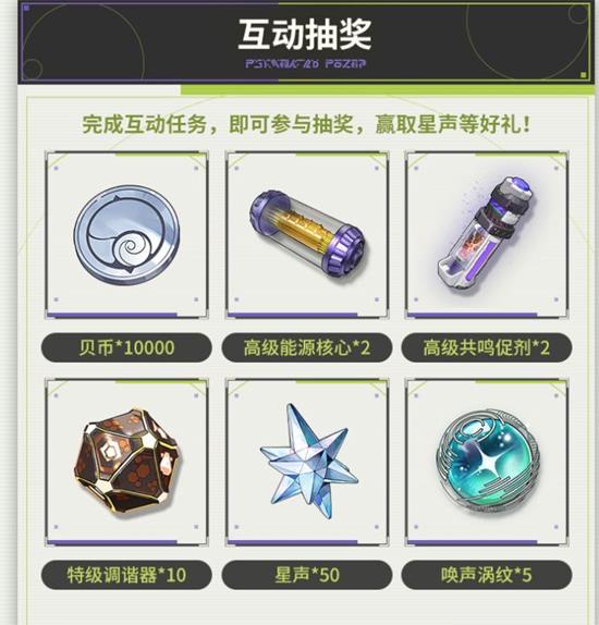 奖池内含:–限定角色立牌套装(500份)–「我们生而眺望」黑胶原声碟(300份)–游戏内「回声海螺」限定头像框(永久,概率8%)–高级调谐器、大型共鸣药剂、贝币等游戏资源(100%掉落,数量随机)③隐藏彩蛋:连续打卡7天解锁隐藏曲目《Beyond the Tide》,收听后可再领专属称号「生而眺望·歌者」。