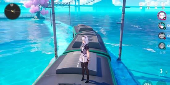 列车流畅的车身行驶在波光粼粼的水面上,沿途樱花飘落,构成了一幅浪漫的移动画卷,这里也成为了许多玩家在异环世界中的拍照打卡圣地。