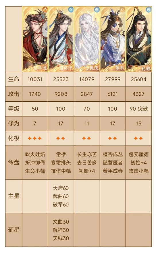 二星诸葛兄弟练度完全够了,单二星董奉/一星董奉孔融即可,对于奶量要求不高