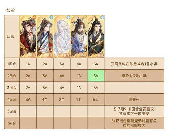 攻击力需要四回合打死陈登,令狐茂不建议换刘豹,刘豹大漠盘会触发机制,这个打法是我试了几个配队最舒服完全不用赌最能站住的配队
