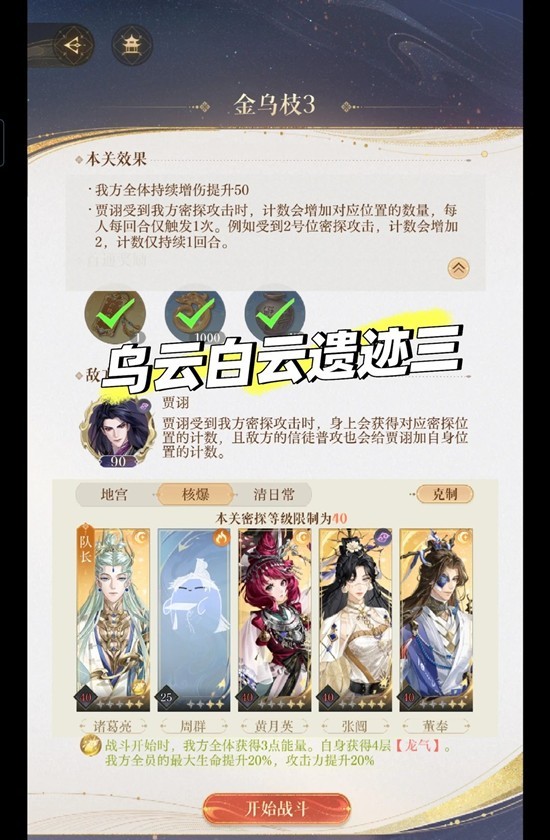 以上就是如鸢傅融乌云白云地宫地下遗迹三贾诩怎么通关攻略的全部内容了,更多游戏资讯,攻略内容敬请关注切游网,您的支持是我们努力的动力!
