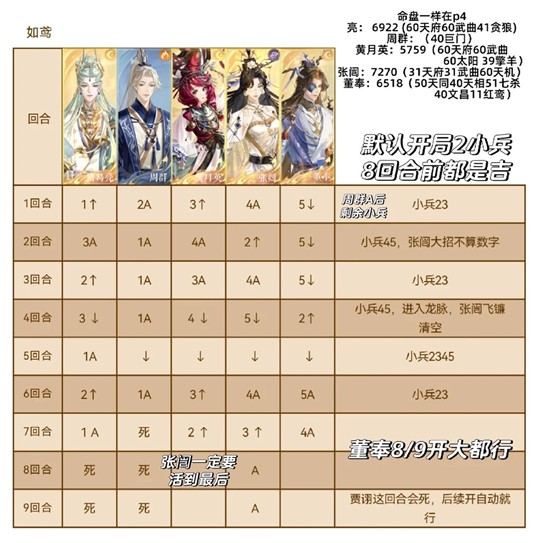 表格默认都是吉,第六回合是凶减小兵也没事,保证诸葛亮黄月英张闿不死就行