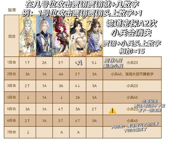 【开局默认2小兵、贾诩抽吉(至少6回合)、表格站位】