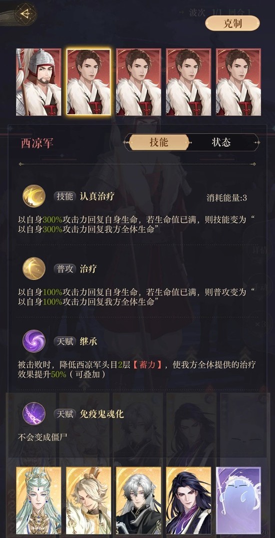 ②四个小兵每回合都要受到攻击(生命满时会给全体治疗,最好是带群攻,至少有一个群攻);