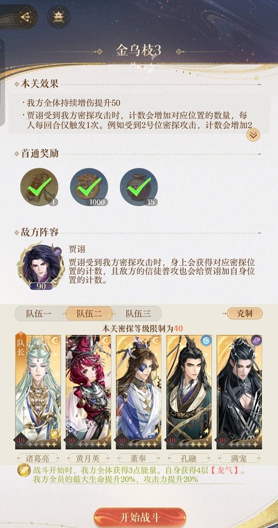 遗迹三老朋友贾诩计数模式,满宠可换张闿,要么四回合董奉净化,要么开大后计数15,注意贾诩15回合内杀死即可