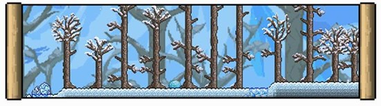 泰拉瑞亚的地表苔原是一个充满冰雪的生态区域,地面上覆盖着雪块、冰块以及特殊的装饰物,比如雪球苔藓和雪生命草。