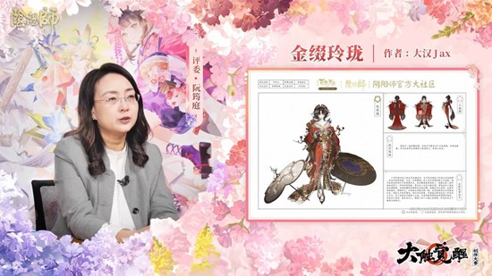 阮筠庭老师点赞【金缀玲珑】的“金箔质感与玲珑光影”,鼓励作者继续探索传统材质在现代角色上的转化;阿梗老师则对【樱时之忆】的“落英动态”给出细化建议,呼吁更多实验性构图,让式神皮肤成为“可穿戴的动画”。