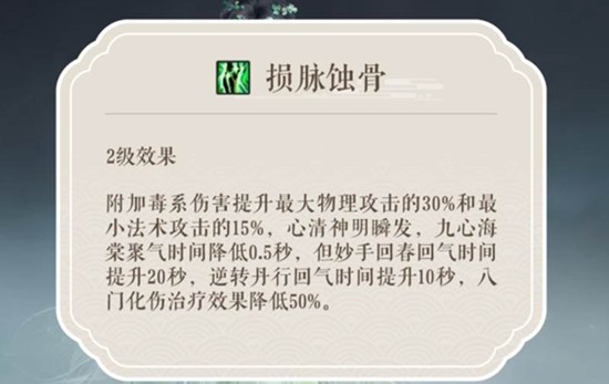 毒医流派的核心特质在于其毒系的持续性伤害。核心技能不仅能对目标造成额外的法术伤害加成,还能激活关键的“五毒心”状态。进入五毒心状态后,角色的毒属性伤害会得到大幅度提升,但相应的,自身的治疗能力会被显著降低。这个状态是毒医输出效率提升的关键支撑。此外,觉醒技能“葬花”在战斗中作用非常关键,它可以控制敌人并造成眩晕效果,为自己和队友创造更好的输出环境。