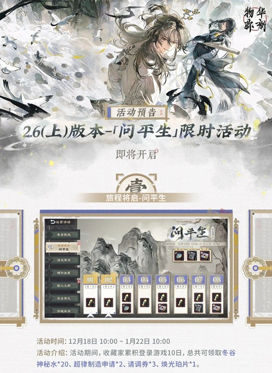 《物华弥新》2.6(上)版本-「问平生」将于12月25日正式开启!