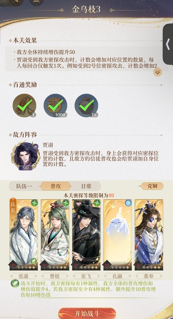 打法:董奉1行动 曹植需要一直普攻不能下拉 曹植3次普攻小兵全清。第4回合贾诩召唤俩小兵(2和3层)曹植普攻群体给小怪叠加一层被动其他人正常输出。第5回合贾诩召唤俩小兵(4和5层)曹植普攻打掉2和3小怪,1到3号位密探行动4号位下拉。第5回合董奉运气好解控曹植就开大 没解控就硬吃贾诩大招。第6回合曹植普攻打掉4和5,1到4号位行动 以此类推