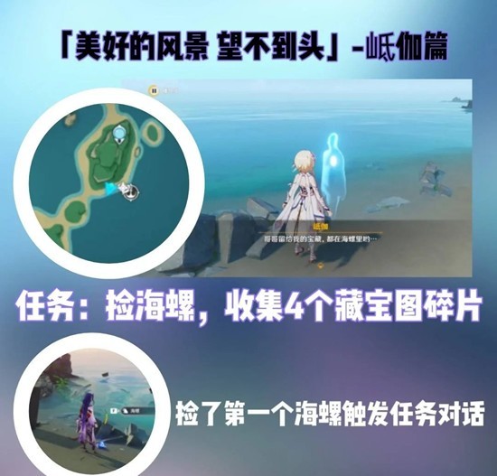 触发条件:神像附近捡到一個蓝色的海螺,拾取之后会见到「岻伽」跟他对话