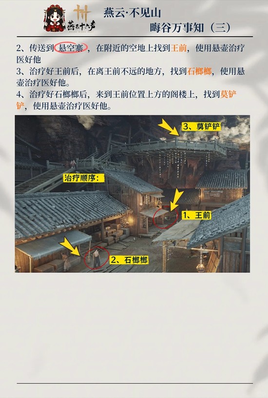 以上就是燕云十六声不见山万事知晦谷之三:天降怪病怎么做攻略的全部内容了,更多游戏资讯,攻略内容敬请关注切游网,您的支持是我们努力的动力!