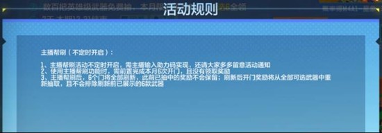 本次活动最重要的核心就在于玩家能够通过邀请好友助力,拥有一次重新刷新奖励的机会,在遇到自己不想要或者是已拥有的武器时,重置奖励后可以再次开启6扇门,重新选择武器奖励。
