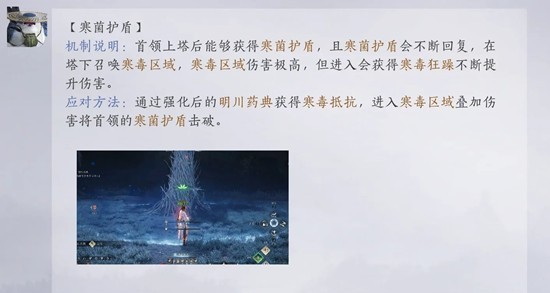 郑鄂1-1:寒菌护盾期间,也就是开怪后BOSS血条蓝色护盾那会。在身上没有寒毒抵抗buff的时候,不要走进中间的蓝色圈内就过了。打过首通应该就都知道,就不多说了,先放大奶阵吃到buff再进去,buff快没放第二个奶阵,两个奶妈循环上就行。