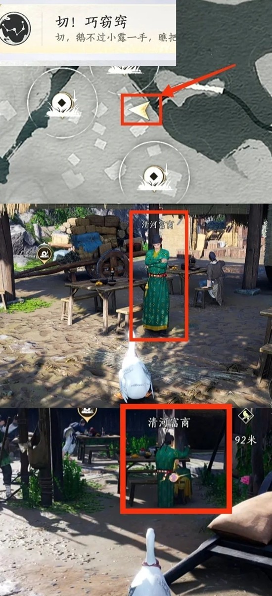 ⑦成就七“切,巧窃窍”:在酒棚附近找到清河富商,尾随他直到他把八音窍放下。