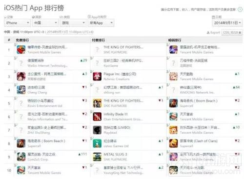 2014年9月11日AppStore游戏排名截图 数据来源:App Annie