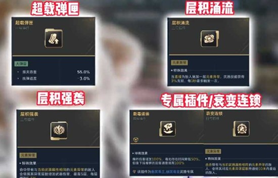 幽冥毒王的输出能力相比前几把武器略低,但其核心价值在于强大的团队辅助能力。它能为队友提供可观的增益效果,是团队作战中的核心辅助武器。插件方面建议选择层级涌流和杀戮连锁,这不仅能延长增益效果的持续时间,更快地消耗敌人生命值,还能在效果叠加后打出可观的伤害,让它的辅助能力更为出色。