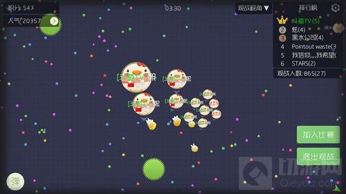 操作技巧:当你看到有人来追你的时候,你就赶紧吐孢子,这样你的体积变小就会移动迅速,然后沿着你吐孢子的方向,不断向前滑行,这样你就可以在快速位移的前提下,保留你的实力,吃掉你吐出来的孢子哦。