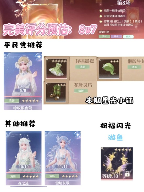 第8关,平民党可以用银夜莺的部件,还没做的可以用当期星光小铺的单品,正好有三件!