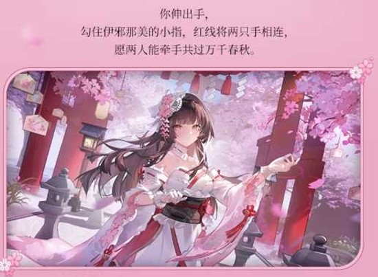 2月5日,与伊邪那美共赴这场冰雪与樱花交织的誓约之礼,在素白华服中感受那份"愿两人能牵手共过万千春秋"的深情承诺。