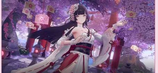 「初雪千华」以日本传统婚礼服饰"白无垢"为设计灵感,素白和服搭配八重樱元素,完美诠释了伊邪那美温婉而神秘的一面。正如角色台词所述:"母亲曾说,当我愿意为一个人穿上这身衣裳时,便是找到了值得托付的人。我想,我找到了。"