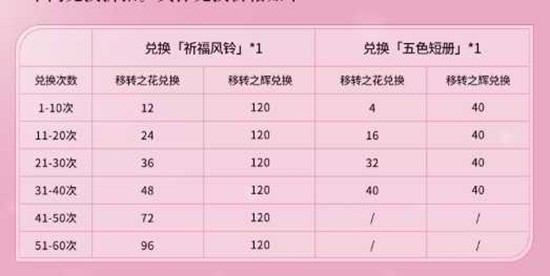 所需道具可通过移转之辉或移转之花兑换,具体兑换价格随次数递增。