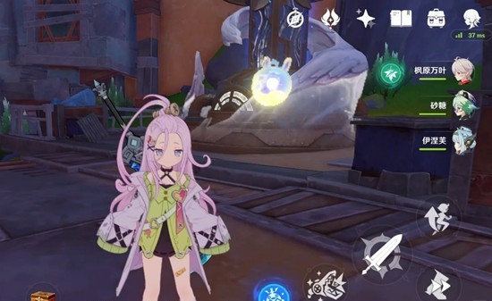 ●长按时进入瞄准状态,可调整投出妙思捕手的方向,选中后同样牵引自身至前方,不论点按、长按,命中敌人后均产出3颗水元素微粒;