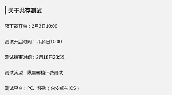 异环的这次共存测试采用限量删档的形式,参与门槛明确。想要获得测试资格,玩家需要在1月23日24:00之前完成官方发布的招募问卷。通过审核的玩家,就可以在2月3日上午10:00开始预下载游戏客户端了。游戏内容则会在2月4日上午10:00准时开放,整个测试将持续到2月18日23:59结束,总计15天。