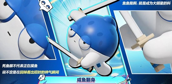 咸鱼蛋定位为近战战士,使用专属武器"咸鱼快刀"。官方预告中更惊现"超超超超超超长咸鱼"的突发消息,暗示该角色可能拥有特殊攻击形态或技能表现。