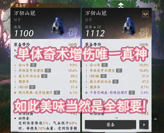 入门必要条件:防具两条【单体奇术增伤】