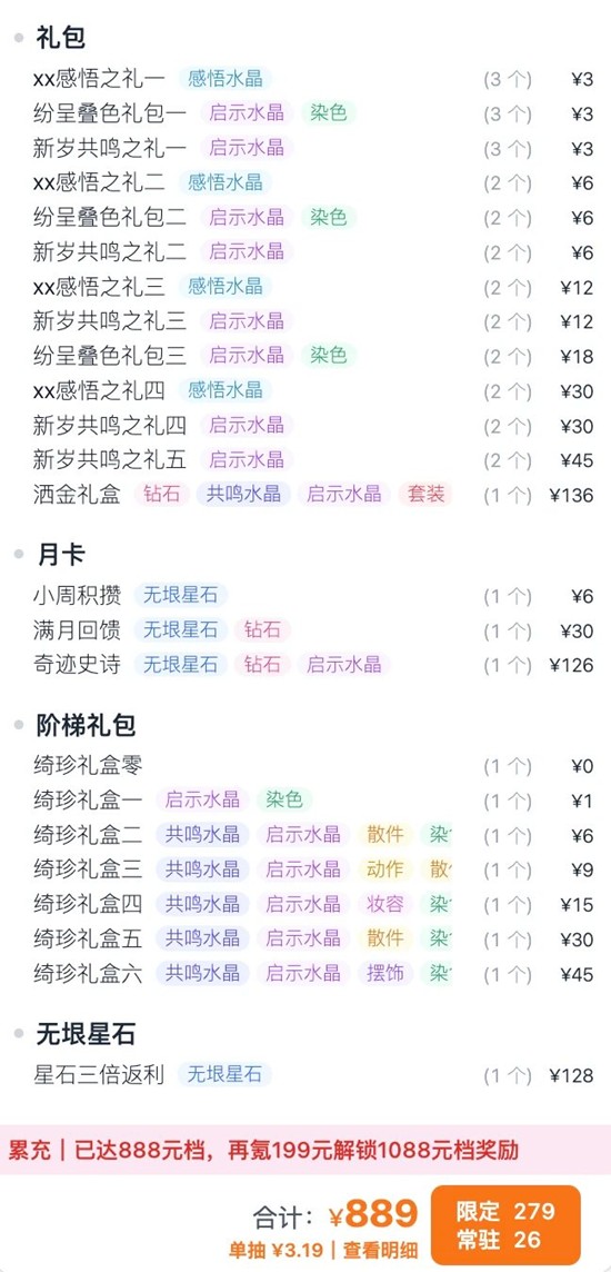 如果之前攒了一些钻,那就不用氪到1088,氪到888就好了。