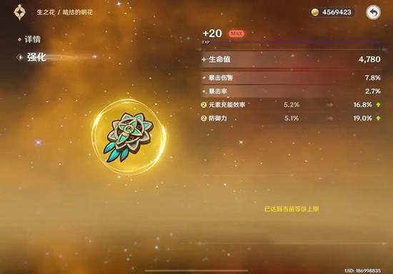 三星圣遗物初始副词条为1-2个,满级12级。四星圣遗物初始副词条为2-3个,满级16级。五星圣遗物初始副词条为3-4个,满级20级。所有星级的圣遗物副词条种类上限均为4个,达到上限后继续升级会转为强化已有词条。