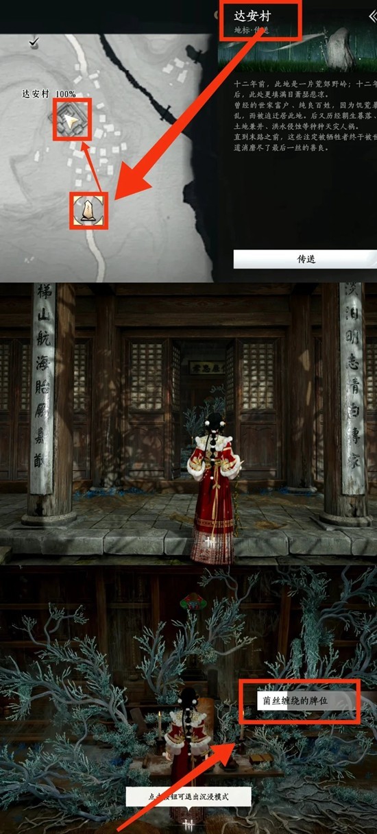 祠堂位于村北,进入后找到牌位,触碰牌位即可进入副本。