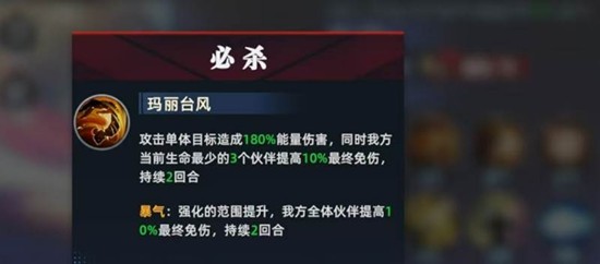 布鲁玛丽的被动技能非常实用,当队友进行普攻时,她能额外恢复50点怒气。这个效果让她能更快地积攒怒气,从而更频繁地释放关键技能。她的爆气机制在自身生命值低于50%时触发,能立刻恢复200点怒气,并获得一个相当于自身最大生命值20%的护盾,这个保命能力让她在危急时刻能稳住阵脚。