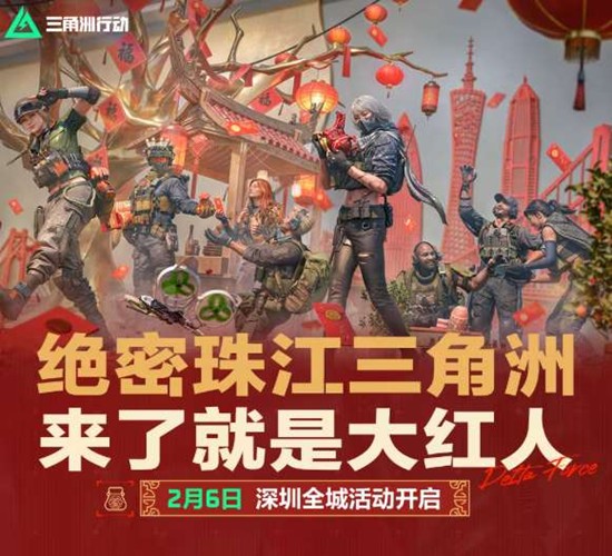 三角洲行动绝密珠江三角洲活动将于2月6日正式启动。本次线下活动以"来了就是大红人"为主题,在深圳设置五大红运任务,为干员带来沉浸式新春体验。