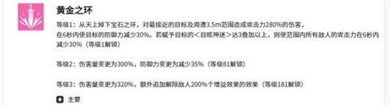 洁依德的主动技能黄金之环可在自身周围三点五米范围内生成宝石环特效,对区域内敌人造成百分之二百八十攻击力的即时伤害,并在接下来的六秒内使目标防御力降低百分之三十。当该效果成功叠加至三层时,将触发额外机制:范围内所有敌人的攻击力下降百分之三十,此削弱效果同样持续六秒。这一技能在密集敌群中能够同时实现输出与团队辅助双重价值。