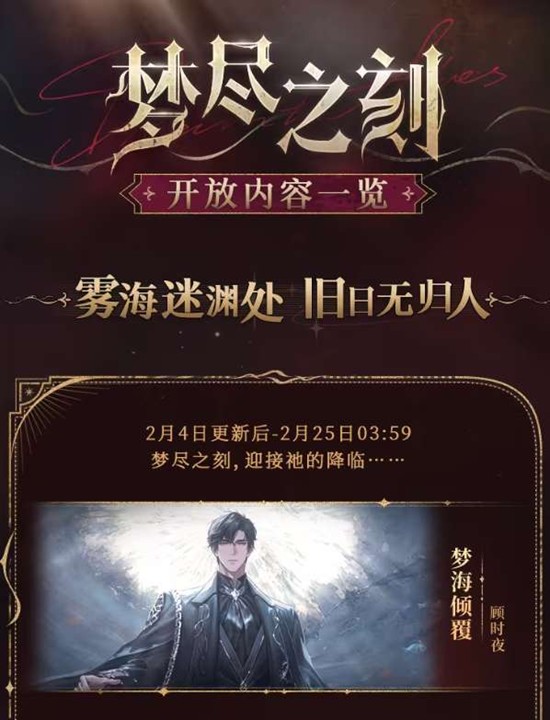 本次开放的「梦尽之刻」为"迷失国度"系列限定侧影,活动持续至2月25日03:59。同期推出的「迷失国度」身份卡"探迷雾"具备特殊的关联强化机制,可为「永雾的低语」与「梦尽之刻」两款世界侧影附加额外的关联效果,显著提升队伍在特定副本中的战斗表现与策略深度。
